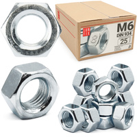Sechskantmutter M6 - 25 Stück Festigkeit 8 Verzinkter Stahl, Regelgewinde DIN 934
