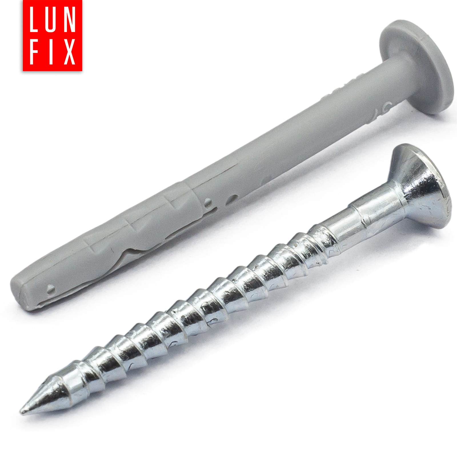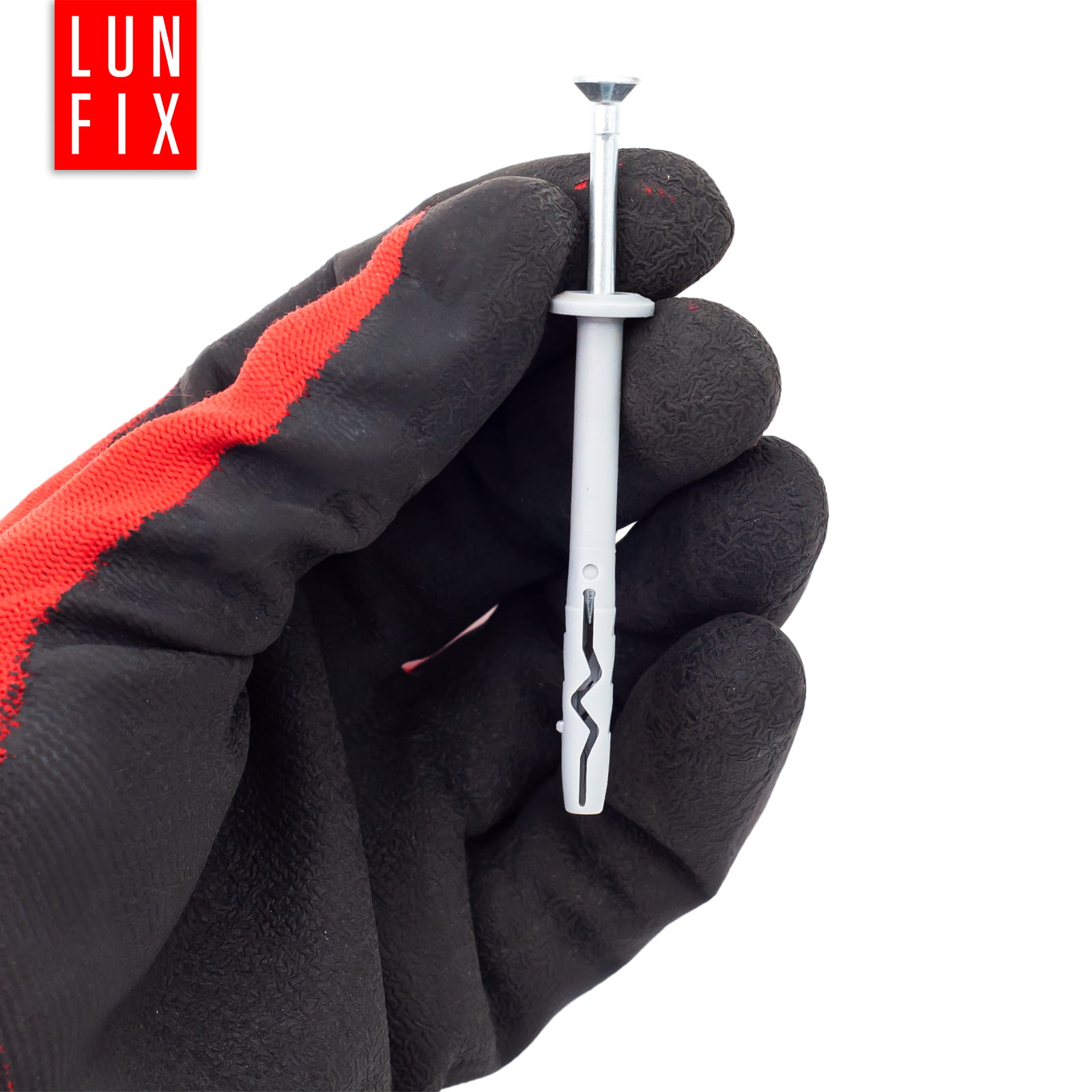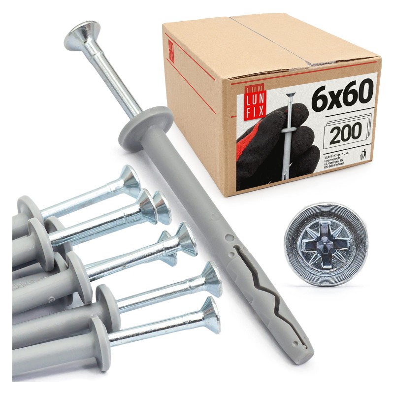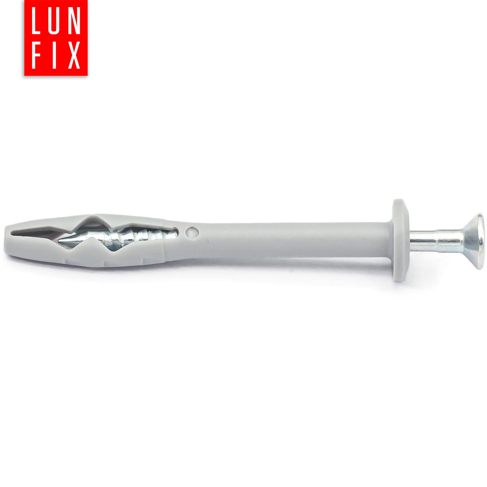 Hersteller : Lun Fix. Dübel schnelle Montage hat einen breiten Anwendungsbereich. Mit seiner Hilfe können Sie Konstruktionen aus Profilen und Ecken sammeln und Blechmaterialien (Trockenbau, Styropor, Hartfaserplatte, Spanplatten usw.) fixieren. Die Halterung kann bei Außen- und Innenarbeiten verwendet werden. Der Dübel passt perfekt zu Beton-, Ziegel-, Stein-, Gips- und Holzuntergründen. Dieser Verschluss besteht aus einem Kunststoffdübel und einer Einschraubschraube. Diese Konstruktion bietet eine hohe Festigkeit und vereinfacht den Installationsprozess. Der Dübel drückt das Material fest gegen den Untergrund, um eine zuverlässige und feste Befestigung zu gewährleisten. Mit dem Schlagdübel können Sie Ihre Produktivität um ein Vielfaches steigern und Ihre Zeit sparen. Kaufen Sie hochwertige Produkte LunFix !