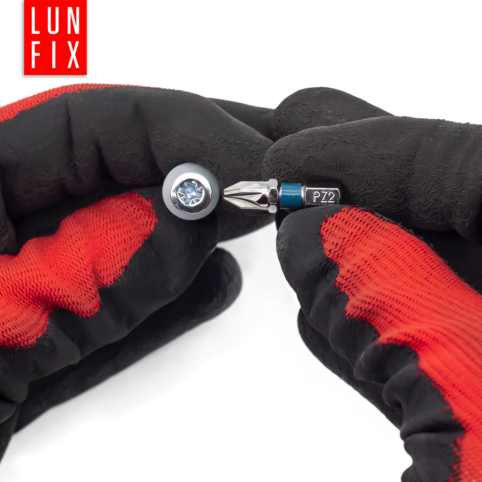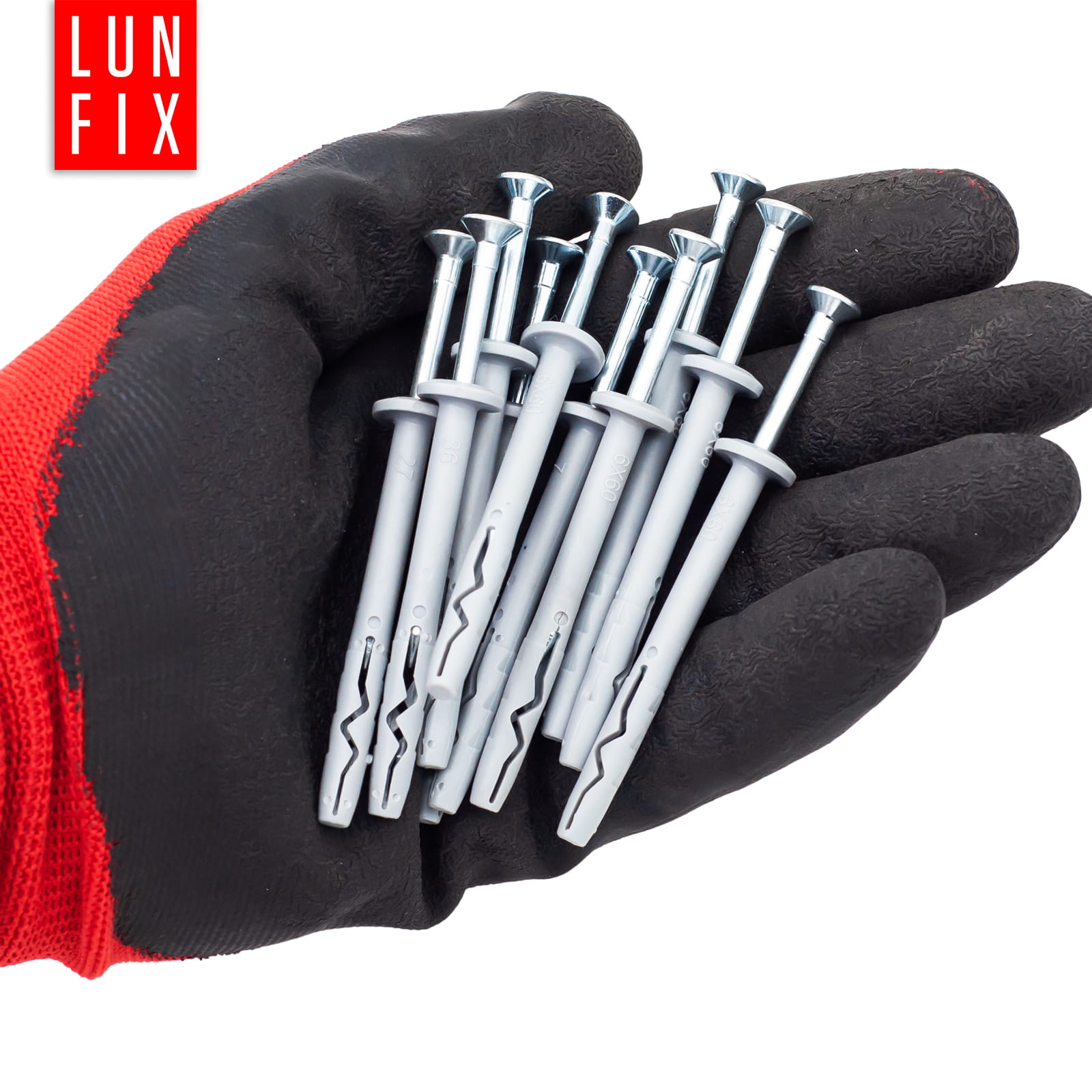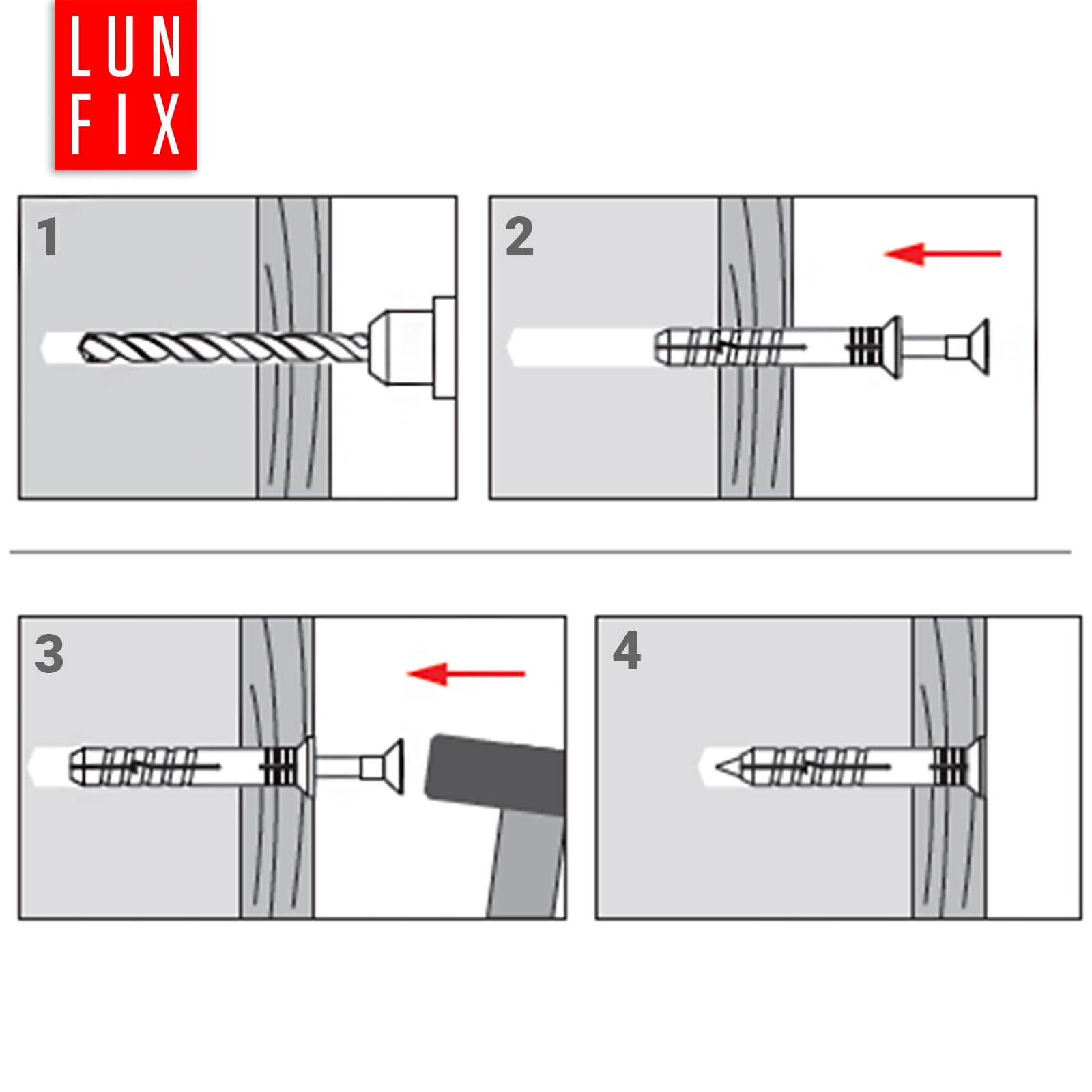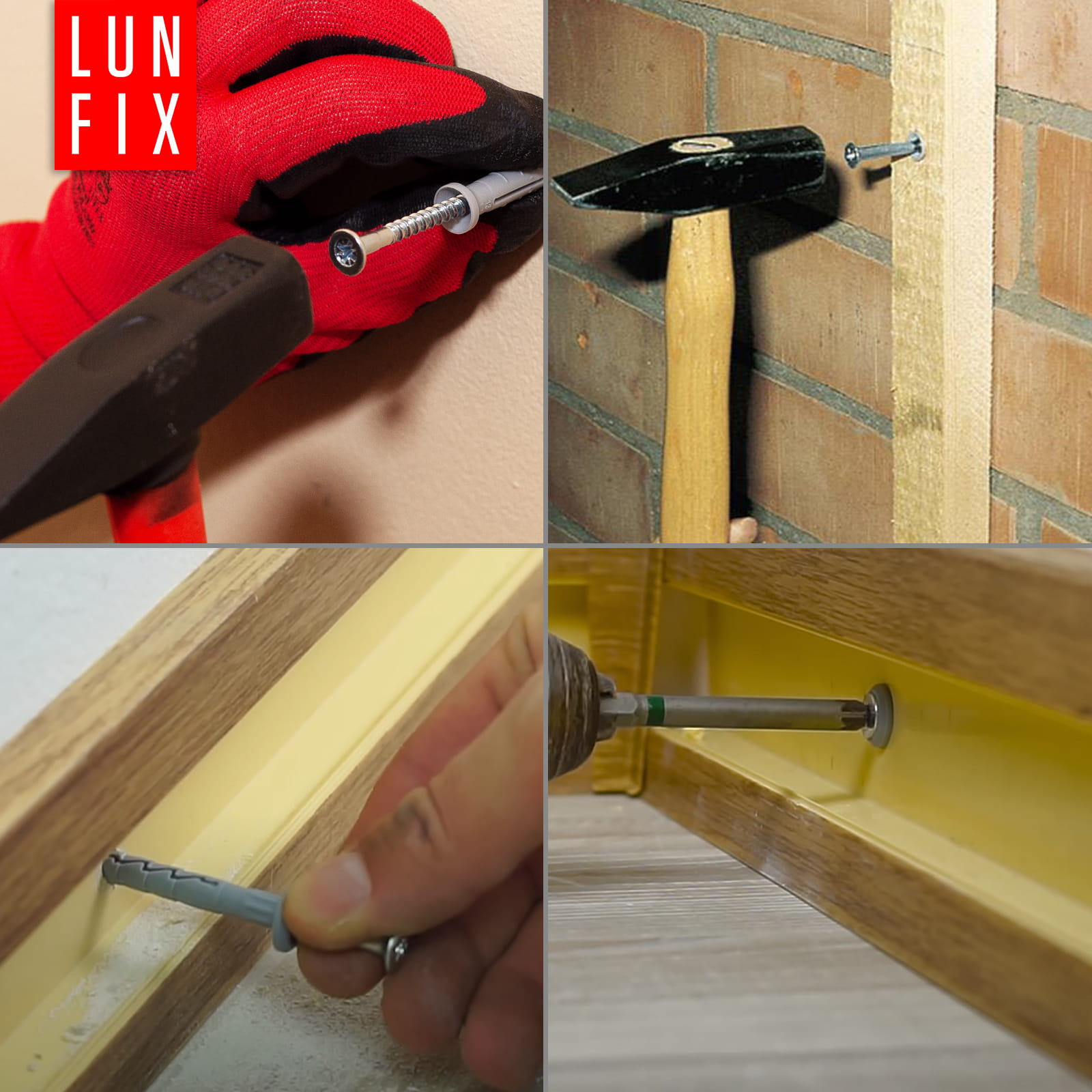 Hersteller : Lun Fix. Dübel schnelle Montage hat einen breiten Anwendungsbereich. Mit seiner Hilfe können Sie Konstruktionen aus Profilen und Ecken sammeln und Blechmaterialien (Trockenbau, Styropor, Hartfaserplatte, Spanplatten usw.) fixieren. Die Halterung kann bei Außen- und Innenarbeiten verwendet werden. Der Dübel passt perfekt zu Beton-, Ziegel-, Stein-, Gips- und Holzuntergründen. Dieser Verschluss besteht aus einem Kunststoffdübel und einer Einschraubschraube. Diese Konstruktion bietet eine hohe Festigkeit und vereinfacht den Installationsprozess. Der Dübel drückt das Material fest gegen den Untergrund, um eine zuverlässige und feste Befestigung zu gewährleisten. Mit dem Schlagdübel können Sie Ihre Produktivität um ein Vielfaches steigern und Ihre Zeit sparen. Kaufen Sie hochwertige Produkte LunFix !