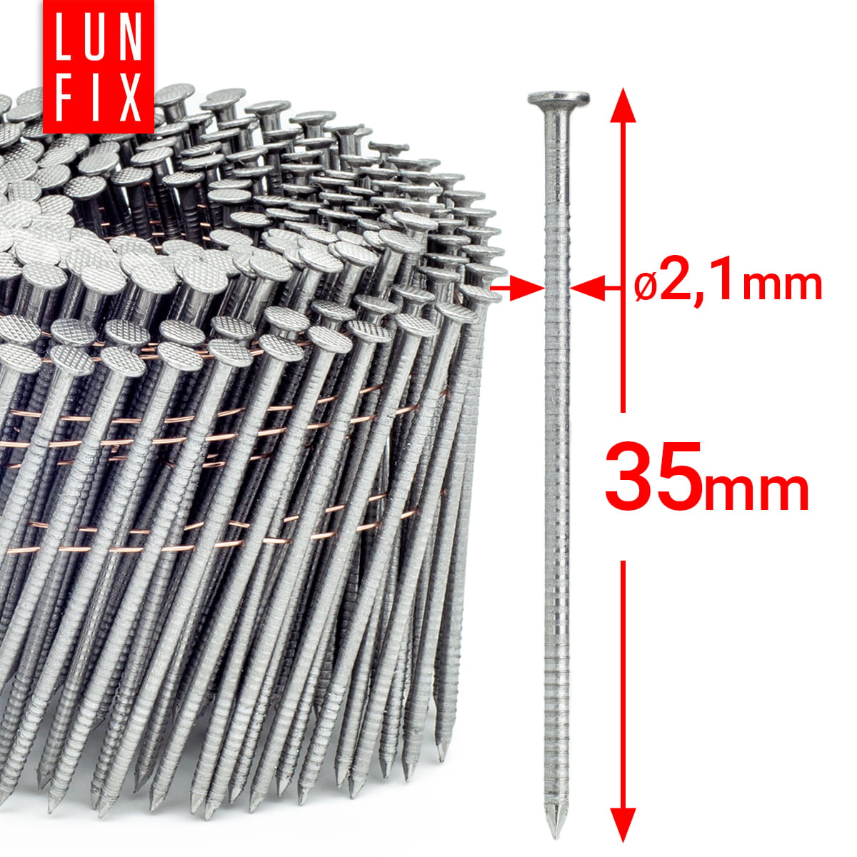 16° Grad Ring Drahtgebundene Coilnägel 2,1 x 35 mm Packung 14400 Stück
