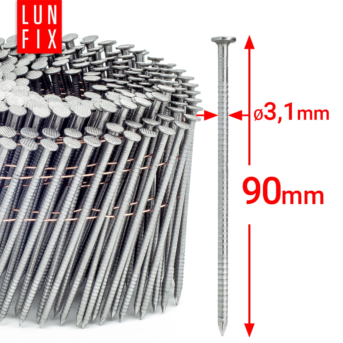 16° Grad Ring Drahtgebundene Coilnägel 3,1 x 90 mm Packung 3600 Stück