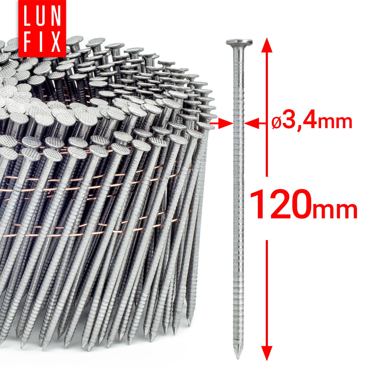 16° Grad Ring Drahtgebundene Coilnägel 3,4 x 120 mm Packung 1800 Stück