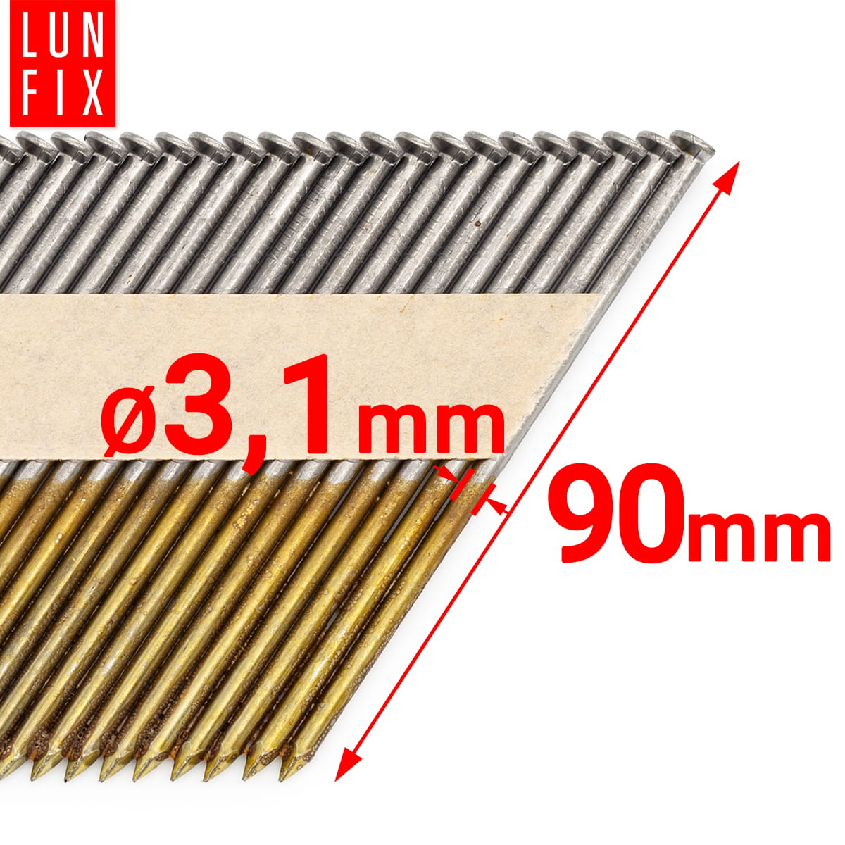 Die Lun Fix 34° Grad Glatt-Nägelserie ist eine ausgezeichnete Wahl für Profis, die mit Akku- und Gasnaglern sowie Druckluftnaglern arbeiten. Diese hochqualitativen Nägel sind in mehreren Größen und Packungsgrößen erhältlich, um eine Vielzahl von Anwendungen im Bauwesen zu unterstützen. • 2,8 x 50 mm: Diese Nadeln sind ideal für feine Befestigungsarbeiten, bei denen Präzision gefragt ist. Jede Packung enthält 4000 Stück unverzinkte, glatte D-Kopf-Nägel, die für eine reibungslose Verarbeitung und festen Sitz sorgen. • 2,8 x 70 mm: Mit einer etwas größeren Länge sind diese Nägel geeignet für Anwendungen, die eine tiefere Penetration und eine stärkere Haltekraft erfordern. Verfügbar in Packungen zu 3000 Stück, bieten sie die Flexibilität für anspruchsvolle Rahmenkonstruktionen. • 3,1 x 90 mm: Diese Nägel sind mit 2000 Stück pro Packung erhältlich und bieten sowohl in der unverzinkten als auch in der extra verzinkten Variante eine zuverlässige Leistung für schwerere Konstruktionsaufgaben. • 3,3 x 100 mm: Die größten in dieser Reihe, diese extra verzinkten Nägel, bieten erhöhte Widerstandsfähigkeit gegen Witterungseinflüsse. Die Packung enthält 2000 Stück, ideal für Außenanwendungen, bei denen Langlebigkeit entscheidend ist. Die Papierbindung der Nägel sorgt für eine saubere und einfache Anwendung, wobei die Nägel leicht von der Streifenverbindung gelöst werden können, ohne zu verbiegen. Die glatte Schaftrückenoberfläche gewährleistet ein schnelles Eindringen ins Holz und eine feste Verankerung. Die extra verzinkten Varianten der 3,1 x 90 mm und 3,3 x 100 mm Nägel sind speziell für Projekte entwickelt, bei denen Korrosionsschutz unerlässlich ist, und erweitern somit das Einsatzspektrum von Lun Fix-Nägeln auf Anwendungen in feuchter oder korrosiver Umgebung. Für Bauunternehmer, Tischler und Zimmerleute, die auf Qualität, Effizienz und Vielseitigkeit setzen, sind die 34° Grad D-Kopf-Nägel von Lun Fix eine exzellente Wahl.