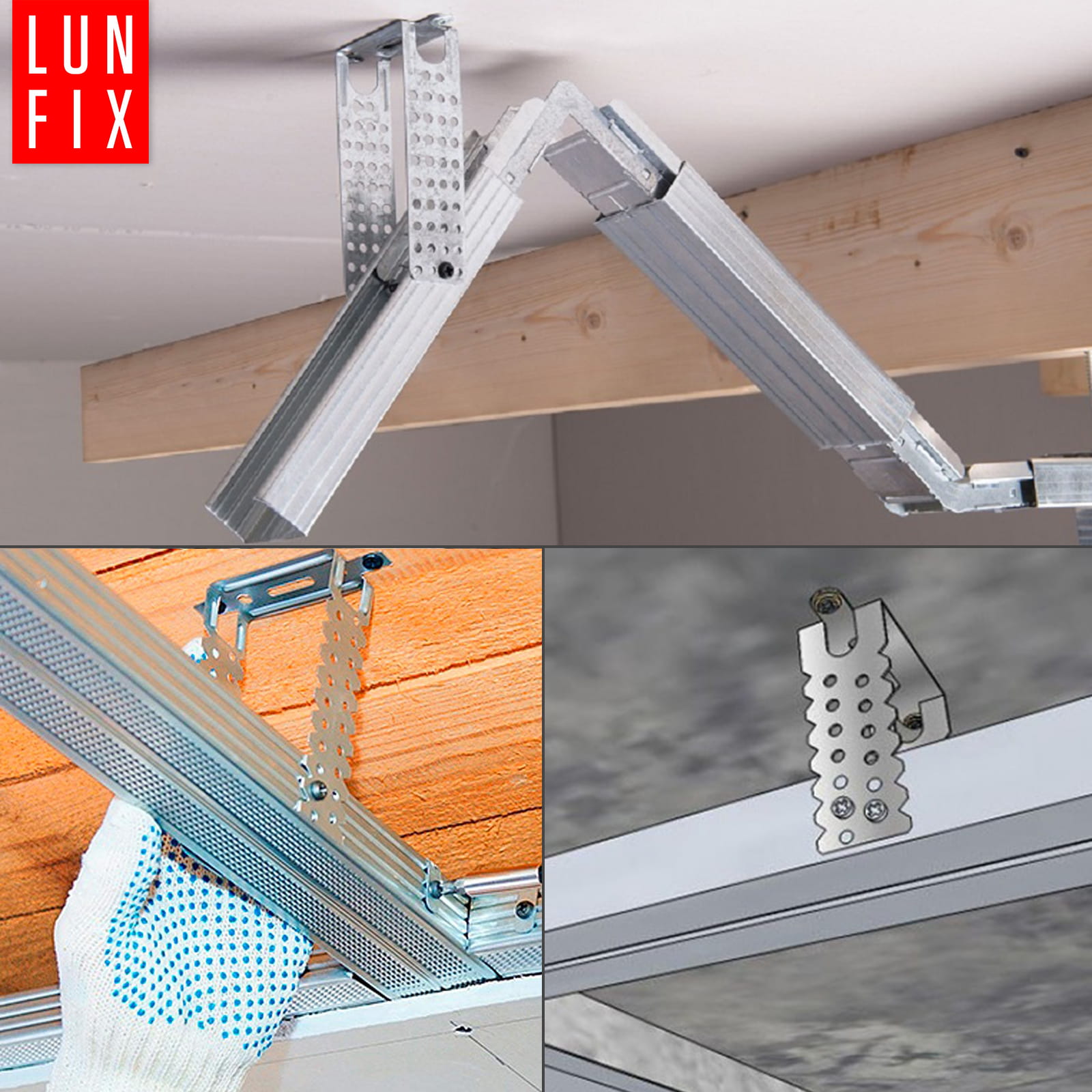 Unsere Direktabhänger sind somit eine ausgezeichnete Wahl für Bauunternehmen, die eine zuverlässige, dauerhafte und ästhetisch ansprechende Lösung für ihre Trockenbauprojekte suchen. Sie sind auch für Heimwerker ideal, die ihre Renovierungsprojekte mit professioneller Präzision und Qualität durchführen möchten. Mit unserem Produkt gewährleisten Sie eine straffe und ordentliche Fertigstellung jeder Deckenkonstruktion, was die optische und strukturelle Qualität Ihrer Räume erhöht.