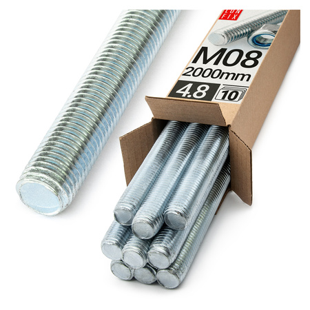 Gewindestange M8 x 2000 mm, 10 Stück Festigkeitsklasse 4.8 DIN 975