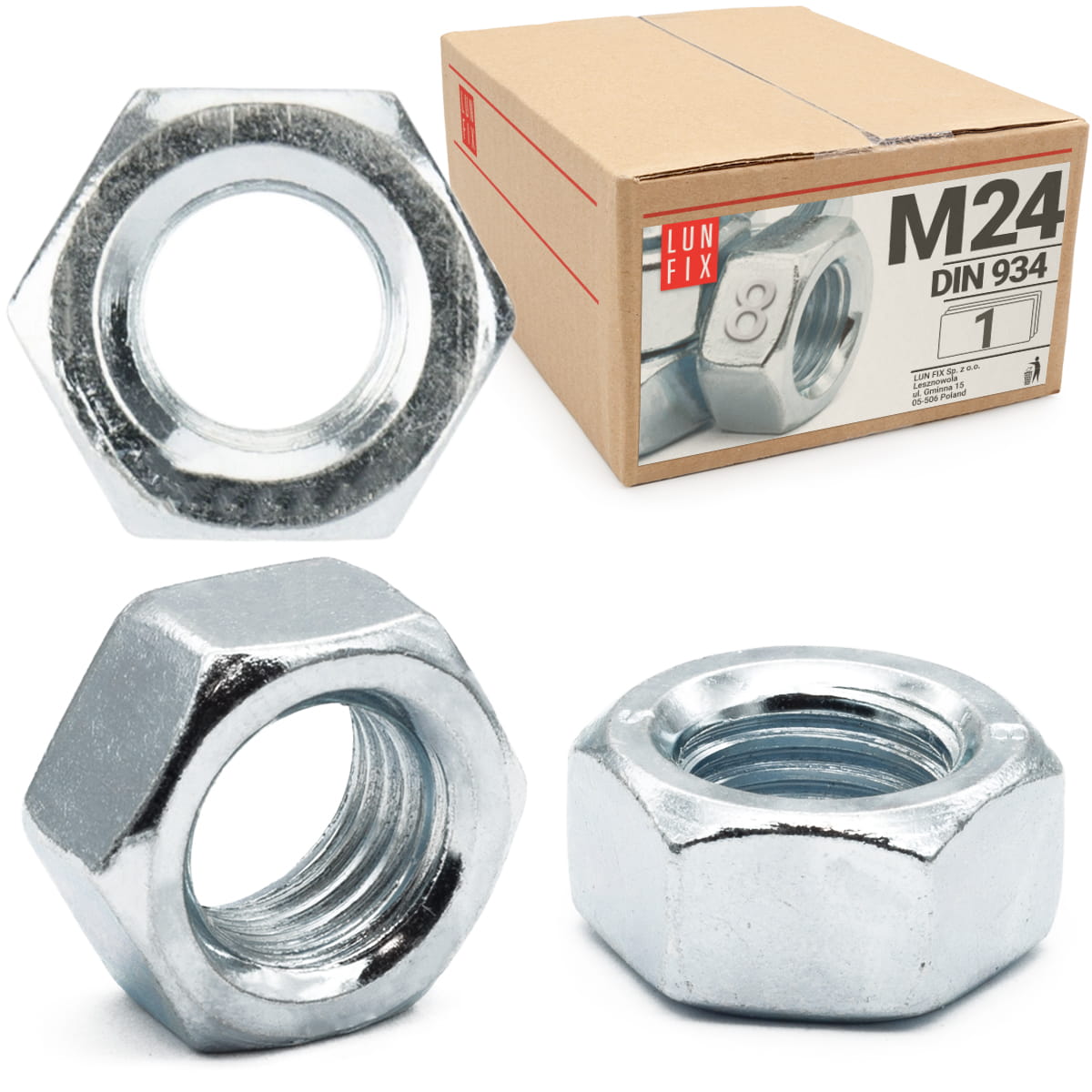 Sechskantmutter M24 - 1 Stück Festigkeit 8 Verzinkter Stahl, Regelgewinde DIN 934
