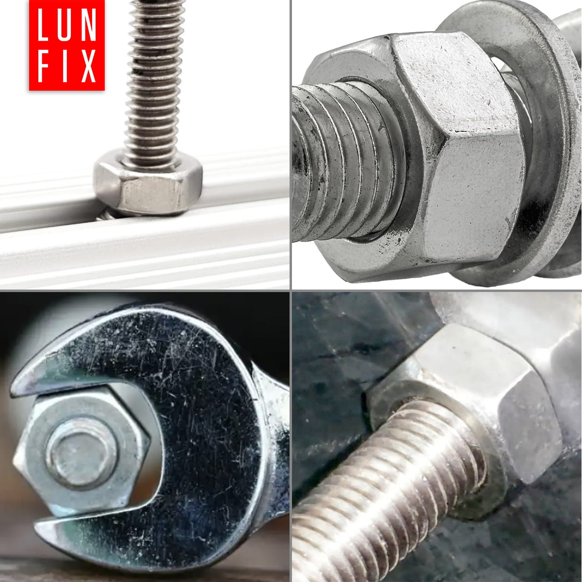 Die Lun Fix Sechskant-Muttern entsprechen dem DIN 934 Standard und bieten eine perfekte Kompatibilität mit metrischen Schrauben und Bolzen. Sie erhalten garantierte Qualität und Sicherheit gemäß internationalen Standards.