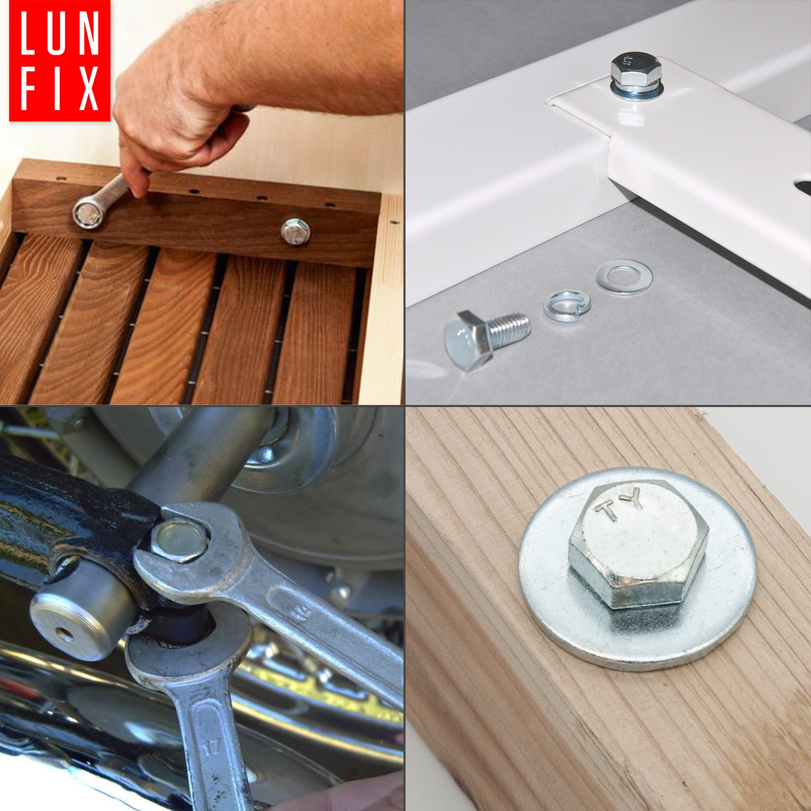 Legen Sie passende Muttern und Unterlegscheiben von Lun Fix im entsprechenden Durchmesser in Ihren Warenkorb.