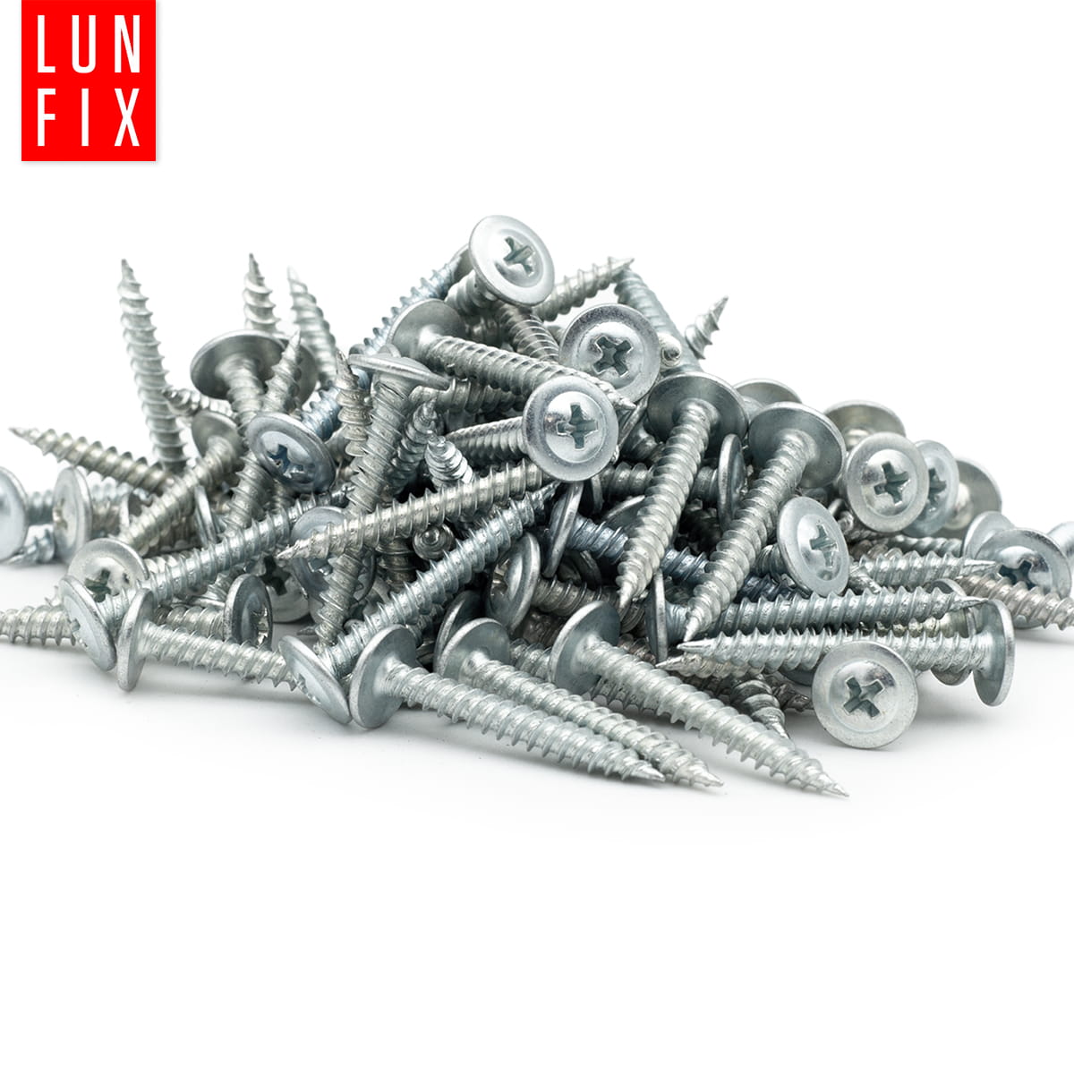 Die Blechschrauben von Lun Fix ohne Bohrspitze zeichnen sich durch ihre starke Performance bei der Montage an dünne Bleche sowie Holzmaterialien wie Sperrholz und Spanplatten aus. Dank ihrer scharfen Spitze und der innovativen Druckscheibe ( besonders großer Schraubenkopf, welcher den Anpressdruck gleichmäßig verteilt) ist in Materialien bis zu einer Dicke von 0,9 mm kein Vorbohren erforderlich. Die Kombination aus einem modifizierten Schraubenkopf und der extremen Spitze am Ende sorgt für eine kraftvolle, sichere Befestigung ohne Materialbeschädigung. Sie können mit diesen Schrauben nicht nur Wandbleche anbringen, sondern zum Beispiel auch Plakate und Werbeschilder befestigen. Der Schraubenkopf verteilt den gesamten Druck auf eine überdurchschnittlich große Auflagefläche, so können auch dünne Materialien sicher installiert werden.Unsere Schrauben punkten mit einfacher Installation, verbesserten Festigkeitseigenschaften und einer hohen Korrosionsbeständigkeit durch elektrolytische Verzinkung, die die Langlebigkeit erhöht. Verlassen Sie sich auf die Qualität von Lun Fix für eine professionelle und schnelle Montage Ihrer Projekte.