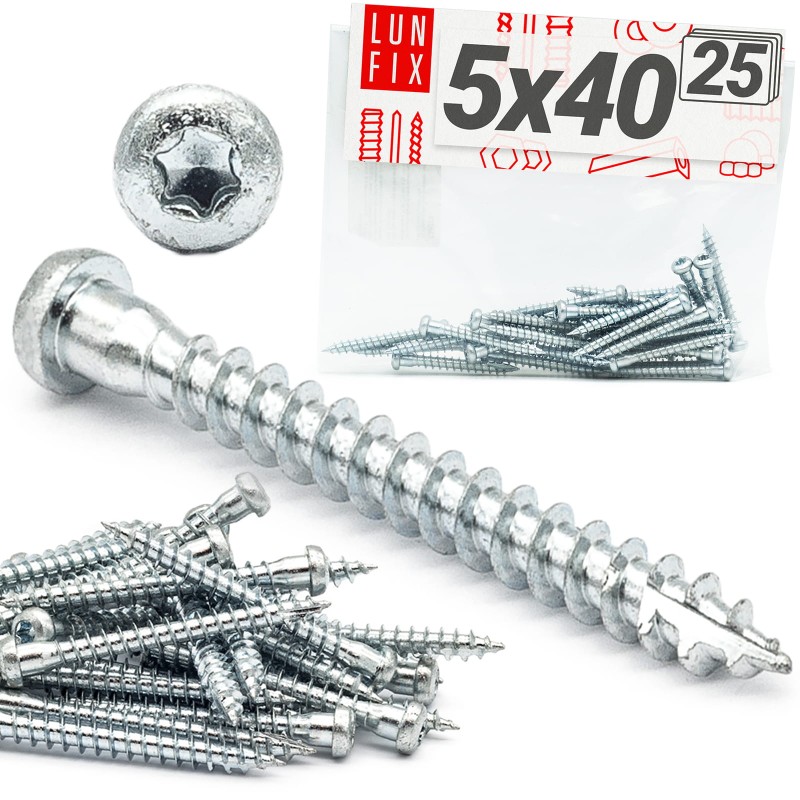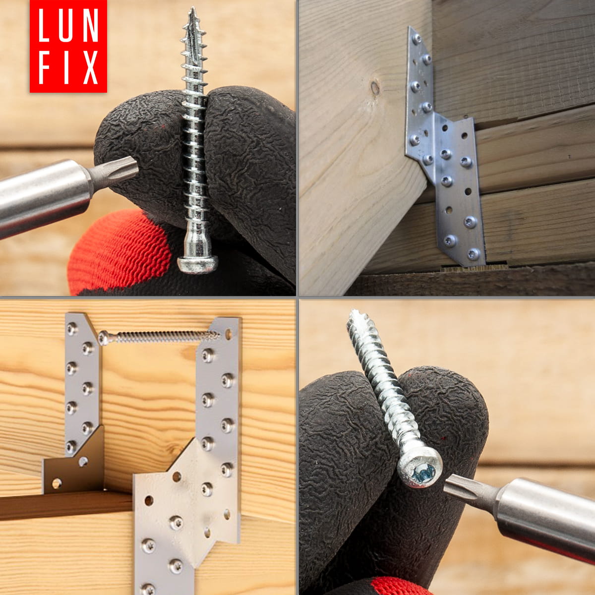 Lun Fix präsentiert eine Auswahl an hochwertigen Ankerschrauben für Stahlblech-Holz-Verbindungen. Diese Schrauben sind speziell für eine kraftschlüssige Lastübertragung konzipiert, unterstützt durch einen passgenauen, zylindrischen Ansatz am Schaft, der eine optimale Verbindung mit Holzverbindern ermöglicht. Ausgestattet mit einem Spezialgewinde und einer Schneidspitze, erlauben die Holzverbinderschrauben eine direkte Verarbeitung ohne Vorbohren. Auch Heimwerker werden die Vorzüge dieser Schrauben schnell bemerken. Sie Können mit diesen Schrauben Metallwinkel sicher fixieren, so zum Beispiel 90 Grad Winkel in Balkenkonstruktionen oder auch für die Montage von Balkenschuhen sind diese Schrauben die erste Wahl. Die Bohrspitze der Schraube verhindert ein ausreißen des Holzes. Die gesamte Stabilität des Projekts wird hierdurch wesentlich erhöht. Für die Montage dieser Schrauben ist lediglich ein Schraubendreher oder ein Akkuschrauber mit einem Torx-Aufsatz erforderlich. Die Anwendung ist unkompliziert und effizient, ideal für Profis und Heimwerker gleichermaßen. Die Lun Fix Winkelbeschlagschrauben mit den Maßen 5,0x35 mm, 5,0x40 mm und 5,0x45 mm und einem TX20 Torx-Antrieb sind in Sets von 500 Stück für Großprojekte oder in handlichen 25-Stück-Packungen für kleinere Vorhaben oder Reparaturen verfügbar. Alle Varianten sind mit einem Vollgewinde versehen und kommen in einem silbernen, verzinkten Finish, das zusätzlichen Korrosionsschutz bietet und Langlebigkeit sichert. Diese Produktlinie ist ein Beweis für die Verpflichtung von Lun Fix zur Qualität und Zuverlässigkeit, die die Marke zu einem Synonym für Stärke und Beständigkeit in der Befestigungstechnologie macht. Egal, ob für den professionellen Einsatz oder für Ihr nächstes Heimwerkerprojekt – Lun Fix liefert die Verbindungsstärke, die Sie benötigen.