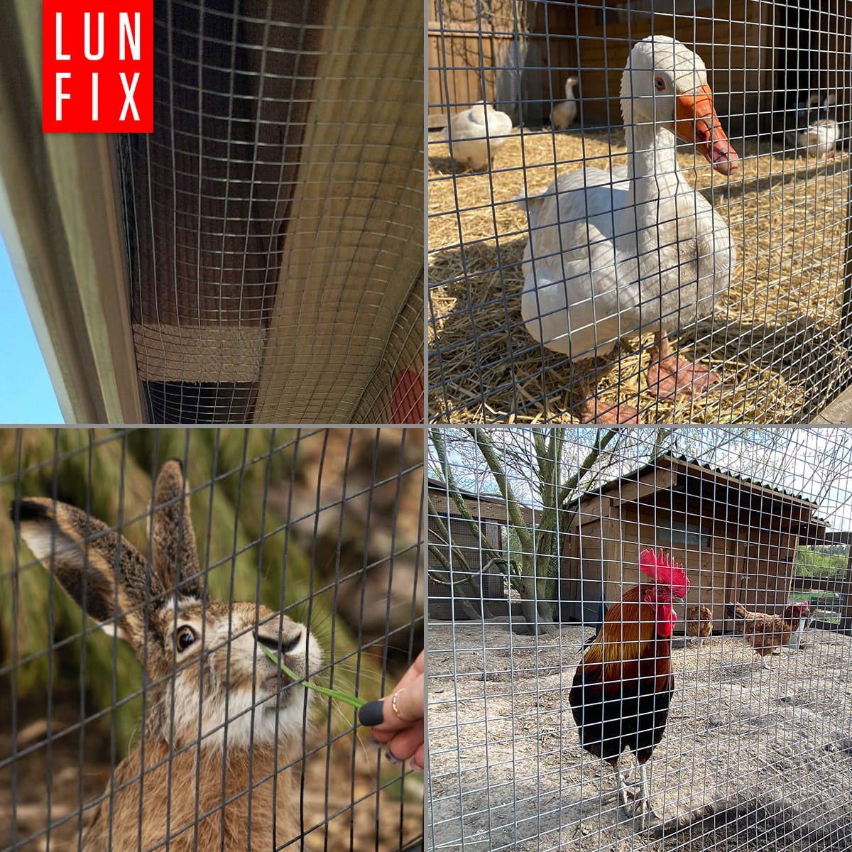 - In der Tierhaltung: Optimal für Schutzzäune, Volieren, Gehege und natürlich als Schutz vor Raubtieren wie Marder oder Fuchs. Dank der einfachen Anwendung können Sie auch ausgefallene Formen und Konzepte umsetzen.