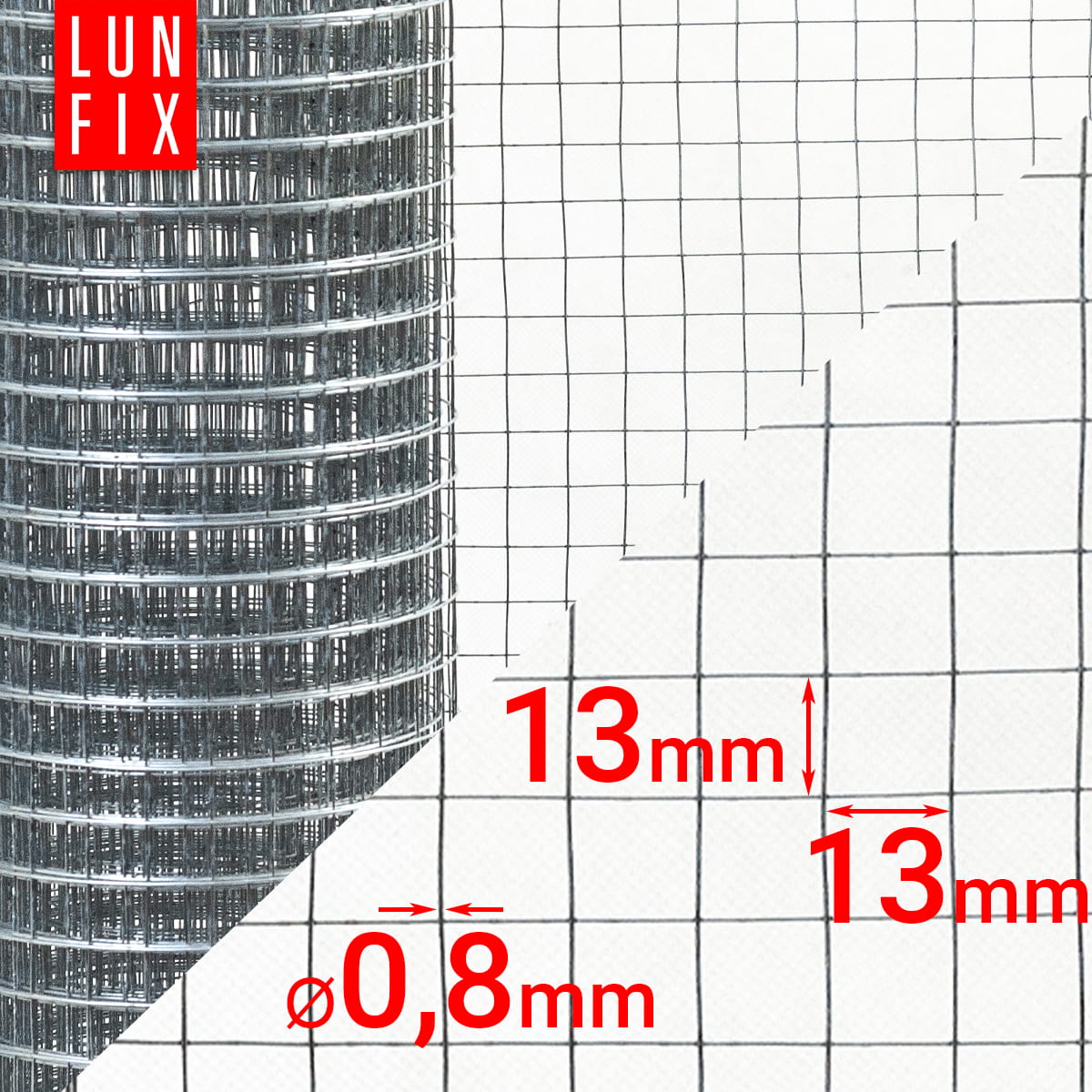 - Maschenweite: 6x6mm, 13x13mm, 19x19mm